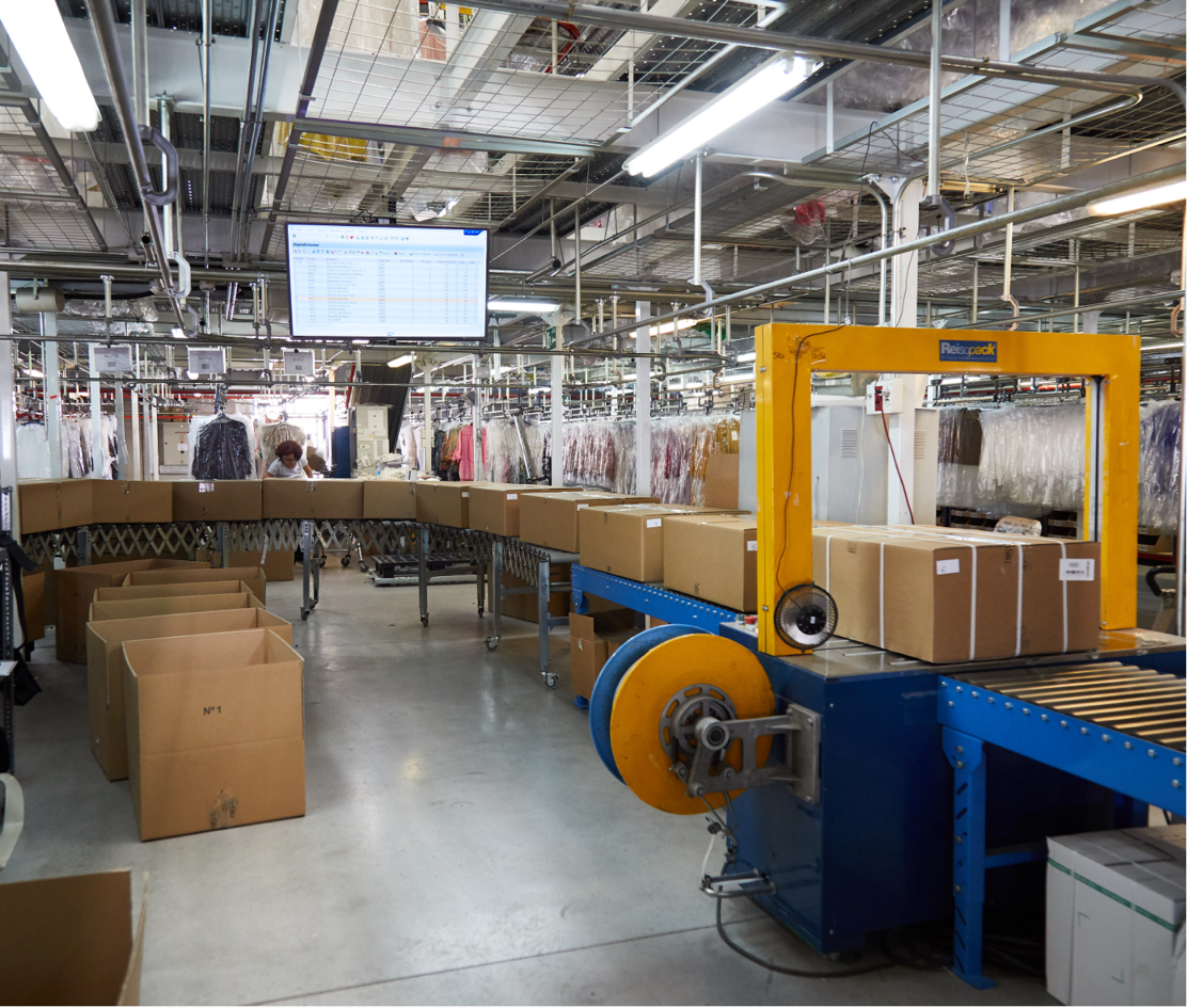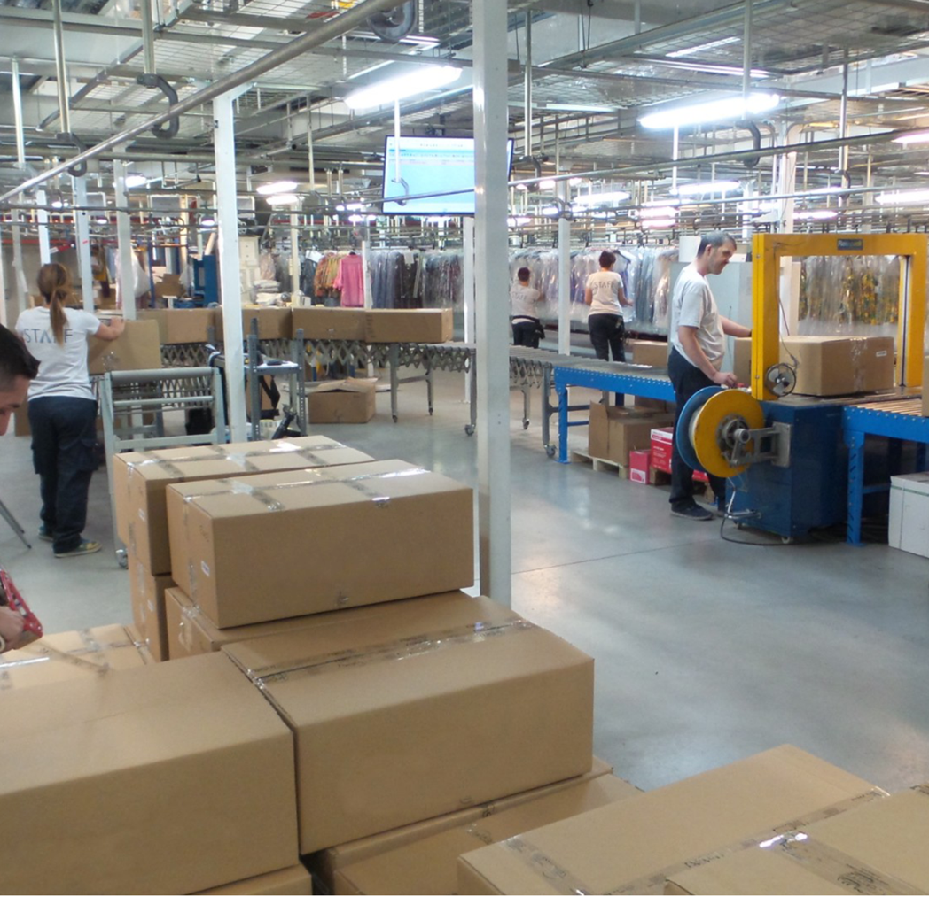 - Manipulación de prendas plegadas y colgadas: arreglos costura, colgado/emperchado, planchado en túnel automático y embolsado.